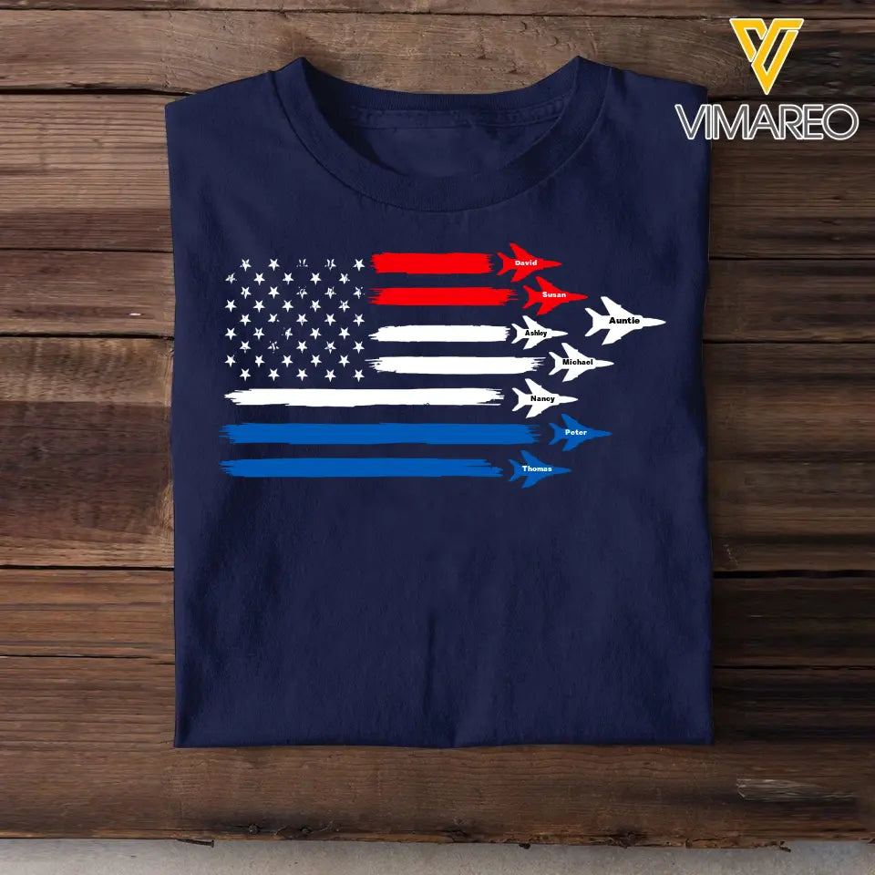 Personalized Auntie & Kid Names Fighter Jet US Flag Independence Day 4th July T-shirt Printed HN241370