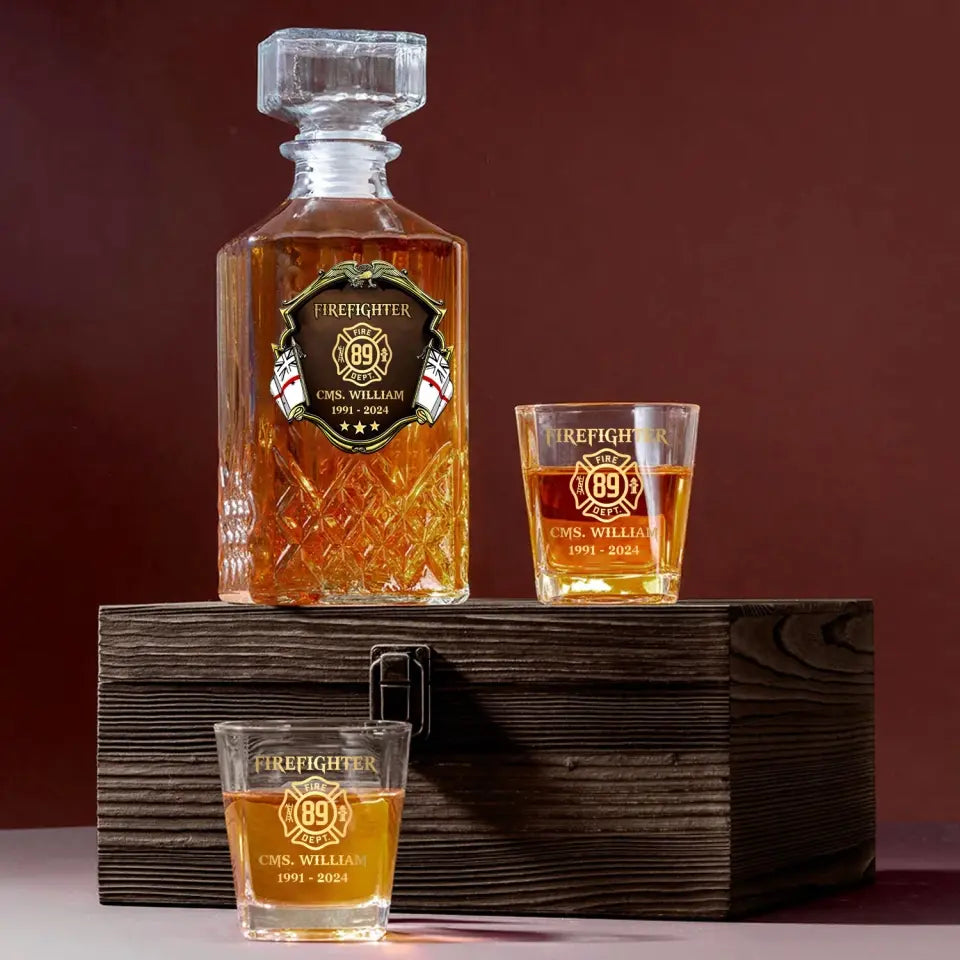 Personalized Australian Firefighter Logo Custom Name & Time Decanter Set With Glasses Printed AHVA251558