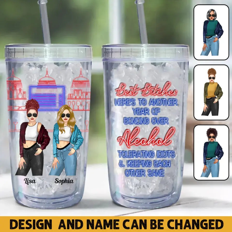 Personalized Besties Best Bithches Here's To Another Year Of Bonding Over Acrylic Insulated Tumbler Printed MTHHN2407
