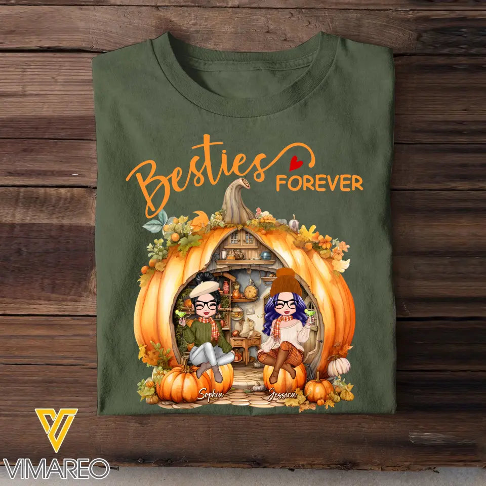 Personalized Besties Forever Fall Season Pumpkin T-shirt Printed MTHQ1007