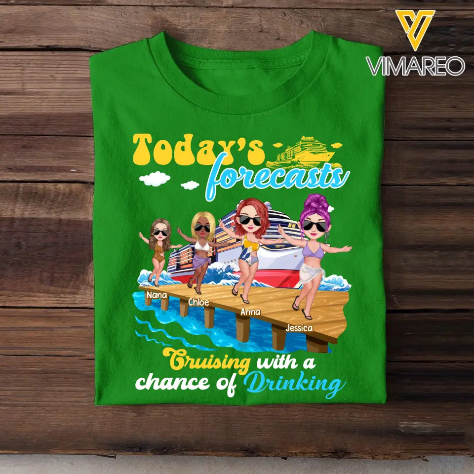 Personalized Today's Forecasts Truising with A Change of Drinking Bestie T-shirt Printed MTHQ3006