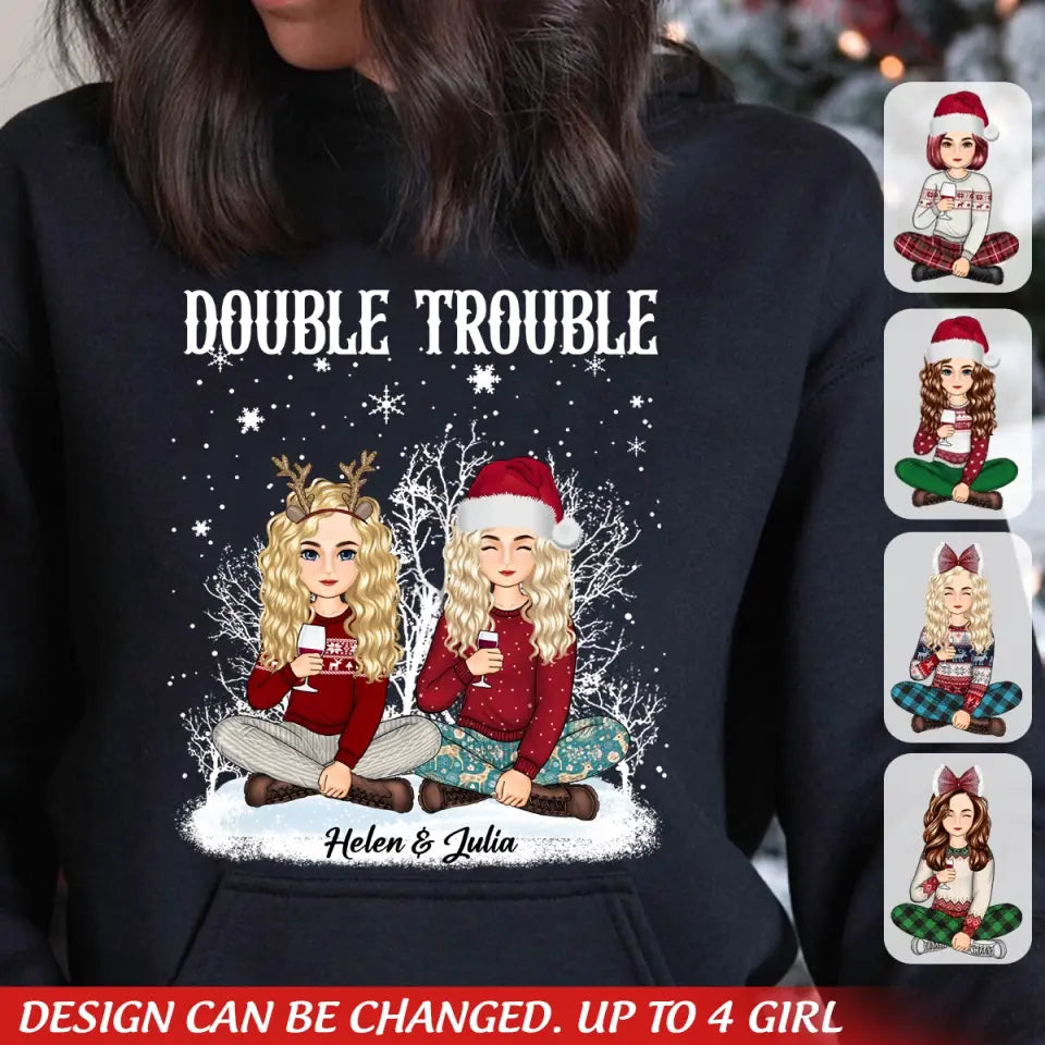 Personalized Bestie Double Trouble Girl Xmas Hoodie 2D Printed PTN23840