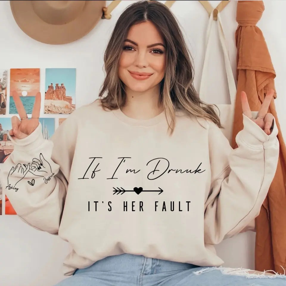Personalized If I'm Drunk It's Her Fault Bestie Gift Sweatshirt Printed VQ24508