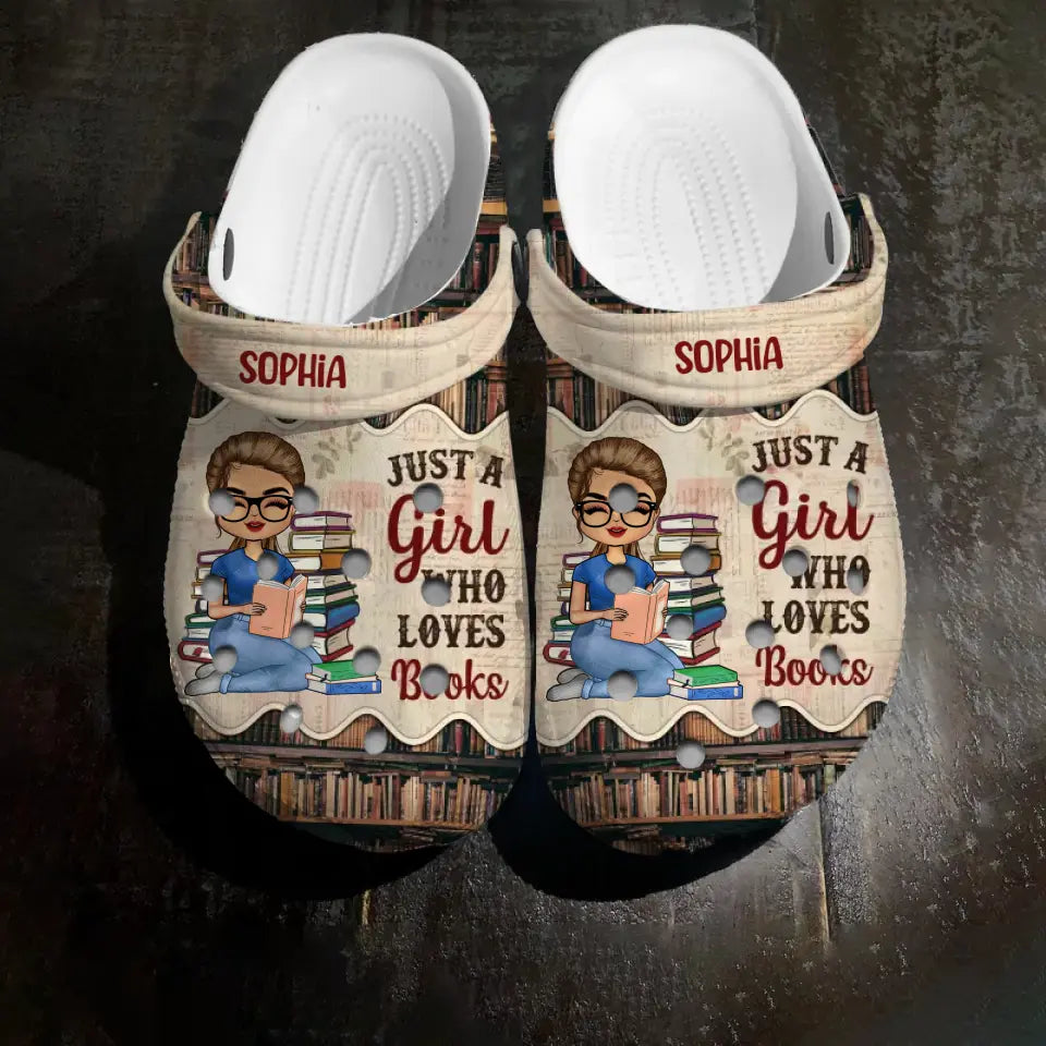Personalized Girl Book Just A Girl Who Loves Books Clog Slipper Shoes Printed 23APR-HQ10