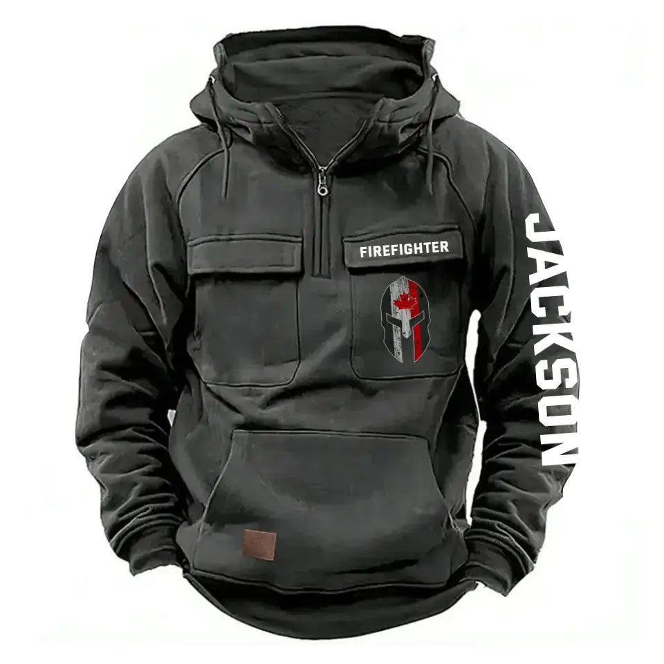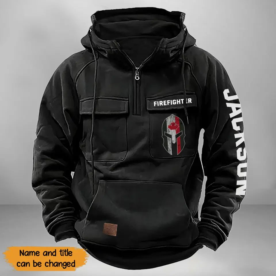 Personalized Spartan Helmet Canadian Firefighter Custom Name American Retro Hooded Sweatshirt Printed QTKH241545