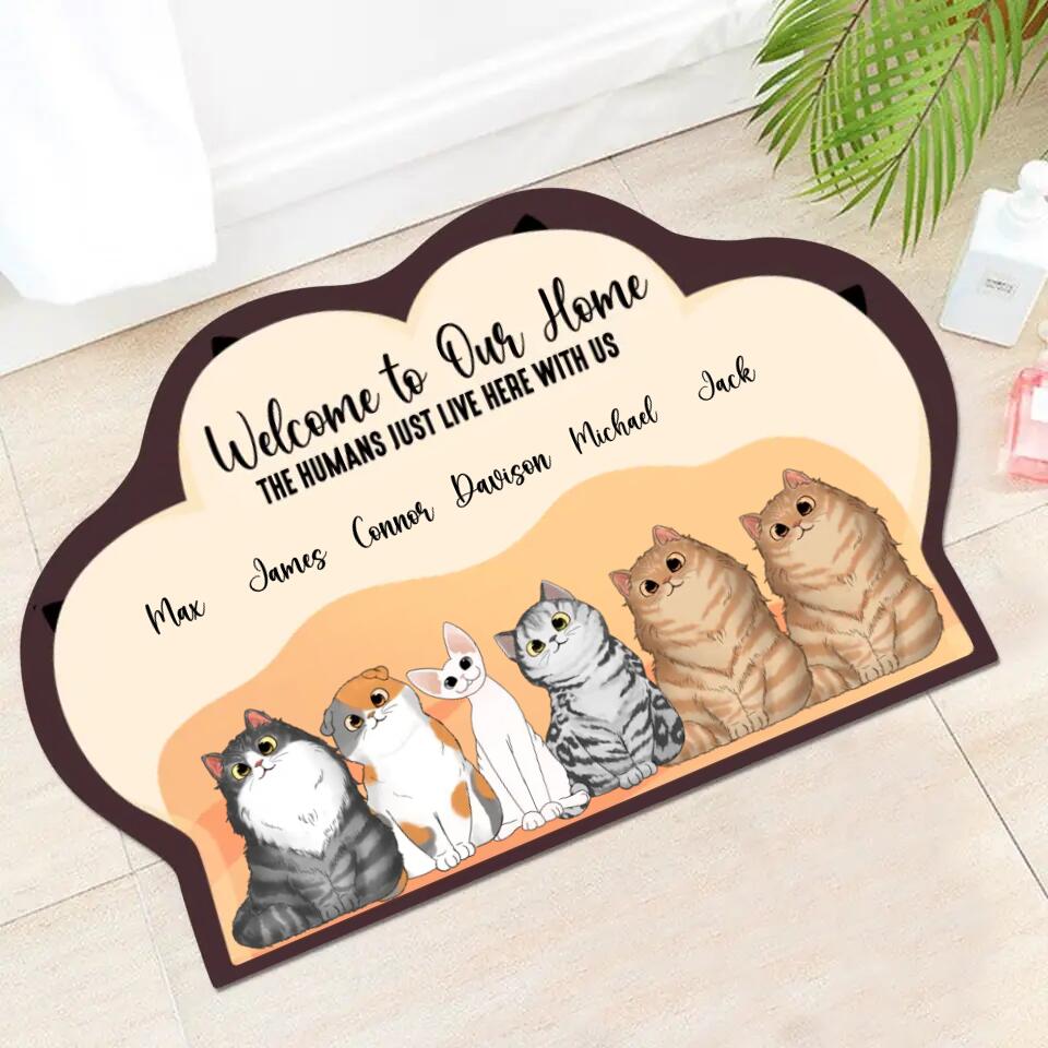 Personalized Welcome To Our Home The Humans Just Live Here With Us Cats with Name Doormat Printed PNDT2802