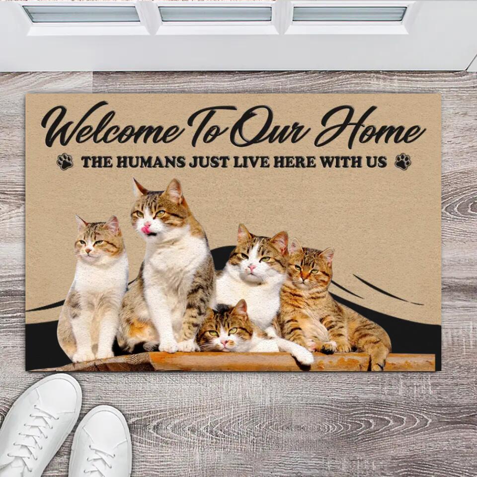 Personalized Upload Your Cat Photo Welcome To Our Home The Human Just Live Here Doormat Printed PNHQ2802