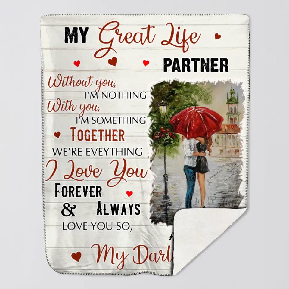 Personalized My Great Life Partner Happy Valentines Day Couple Gift Quilt Blanket Printed PNHY0601
