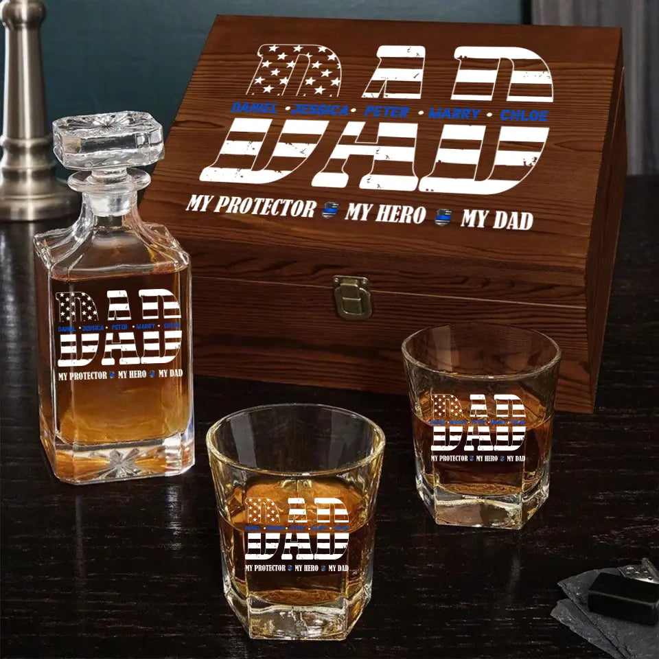 This product is a personalized decanter set. Personalized decanter sets are the perfect gift for any occasion. This whiskey military gift set is ideal for any gift-giving occasion for anyone in the Army, Navy, Air Force, or National Guard.