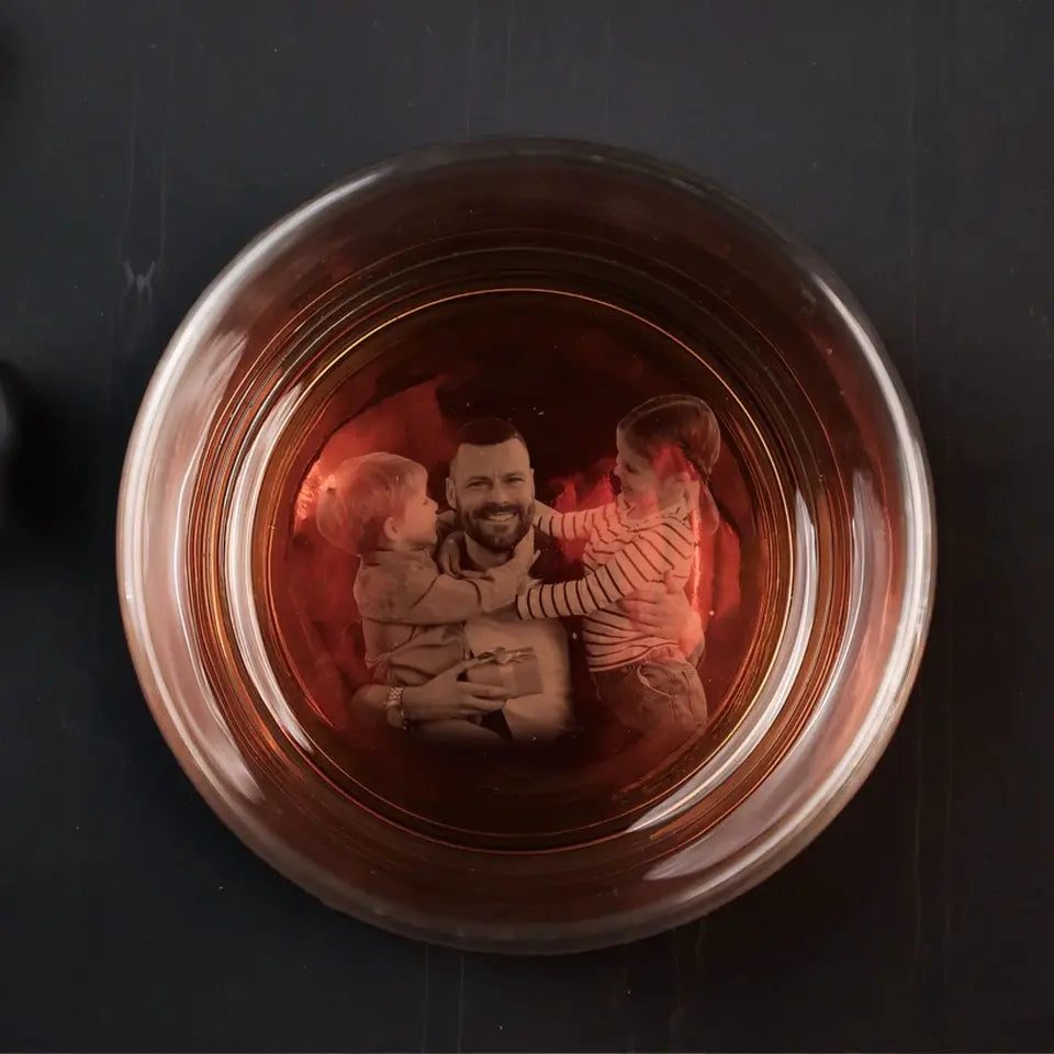 Personalized Upload Your Photo Dad & Kids Famlily Image Father's Day Gift Whiskey Glass Print On Bottom Printed QTVA241313