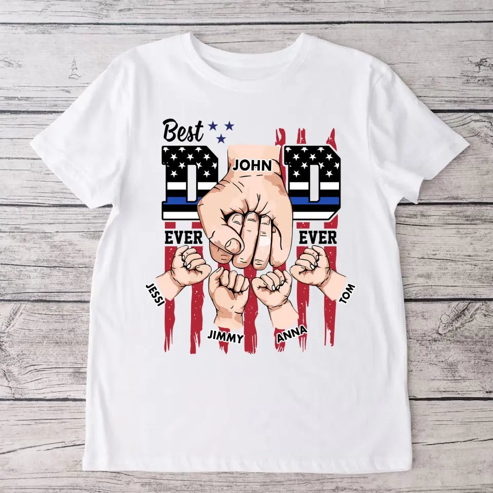 Personalized Best Dad Ever US Dad Hands & Kid Names Happy Father's Day Gift For Dad T-shirt Printed QTVA241448