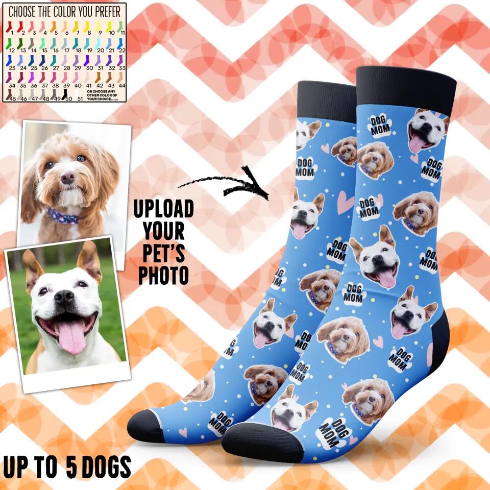 Personalized Upload Your Dog Photos Head Dog Mom Crew Socks Printed PNDT1303