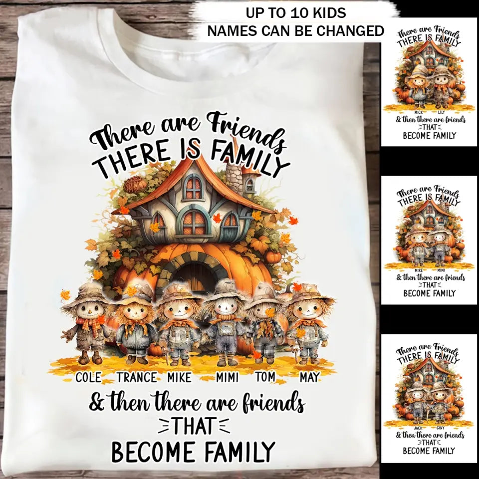 Personalized Fall Season Pumpkin There Are Friends There Is Family & Then There Are Friends That Become Family Kid Names T-Shirt Printed MTPVD1707