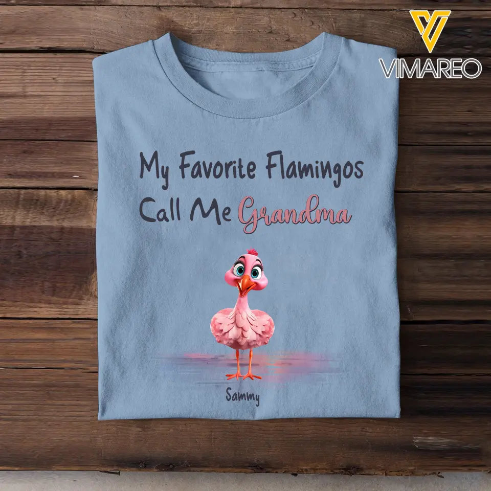 Personalized My Favorite Flamingos Call Me Grandma & Kid Names T-shirt Printed HN241145