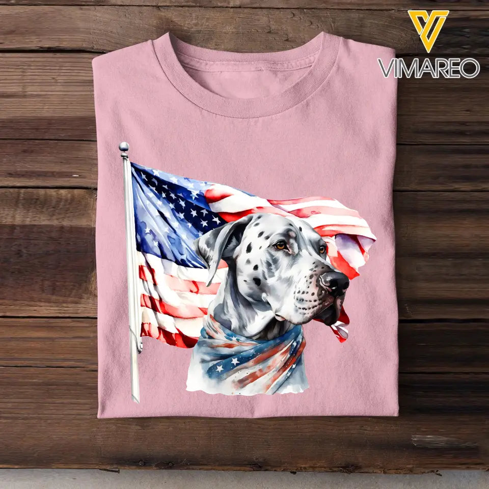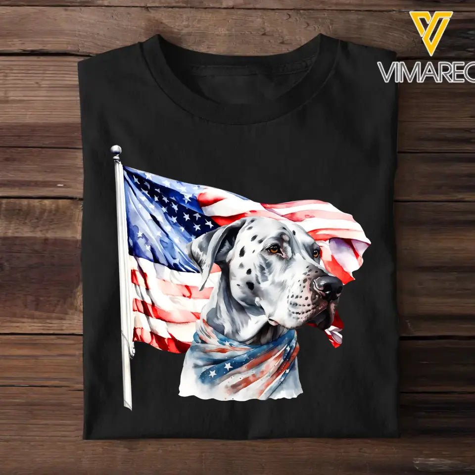 Happy Independence Day Great Dane Lover Tshirt With Watercolor Art Design