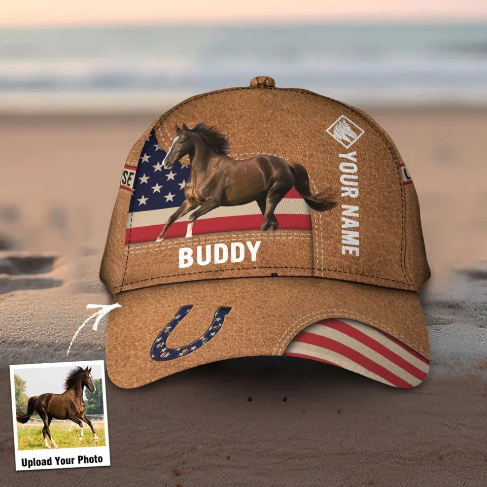 Personalized Upload Your Horse Photo Flag Horse Lovers Gift Cap 3D Printed HTHPD2407