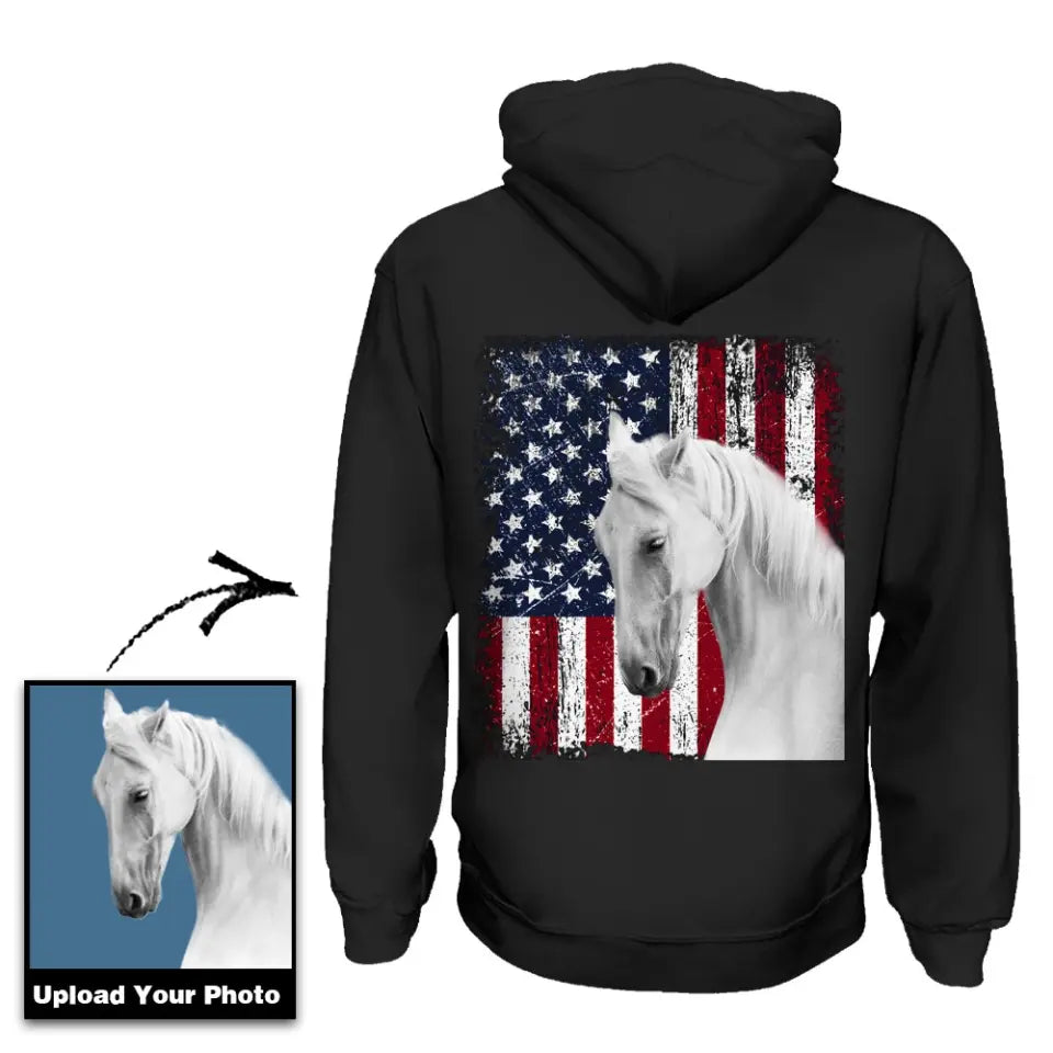 Personalized Upload Your Horse Photo US Flag Hoodie Printed 23MAY-TB06