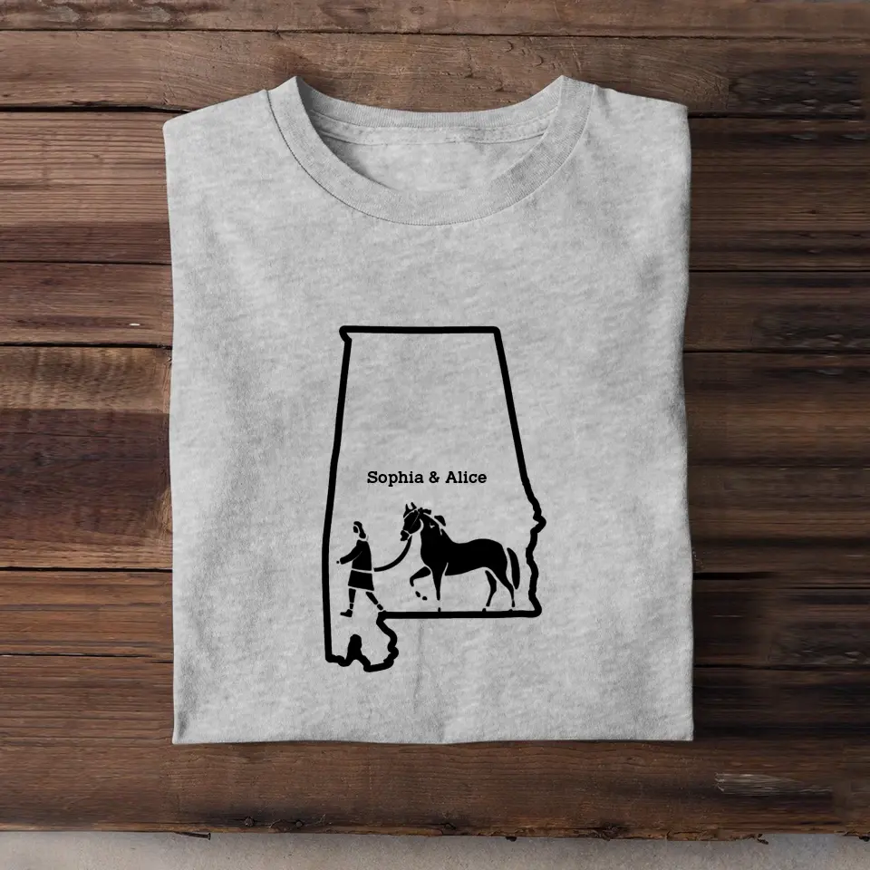 Personalized Horse Girl US State Map Custom Name T-shirt Printed VA241046