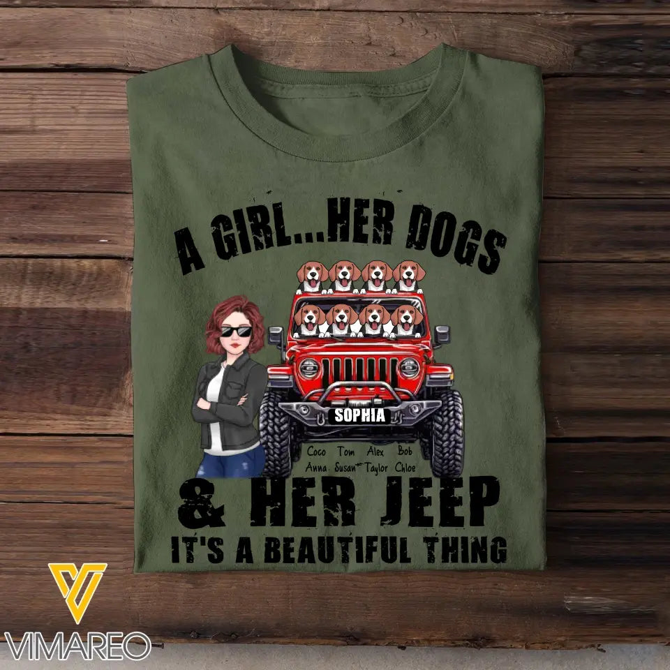 Personalized A Girl  Her Dogs & Her Jeep It's A Beautiful Thing Jeep Girl T-shirt Printed HN241895