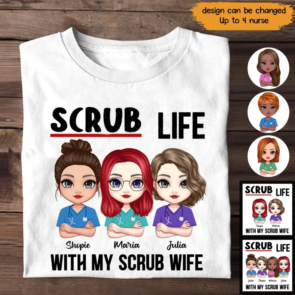 Personalized Nurse Besties Scrub Life With My Scrub Wife T-shirt Printed QTPN2505