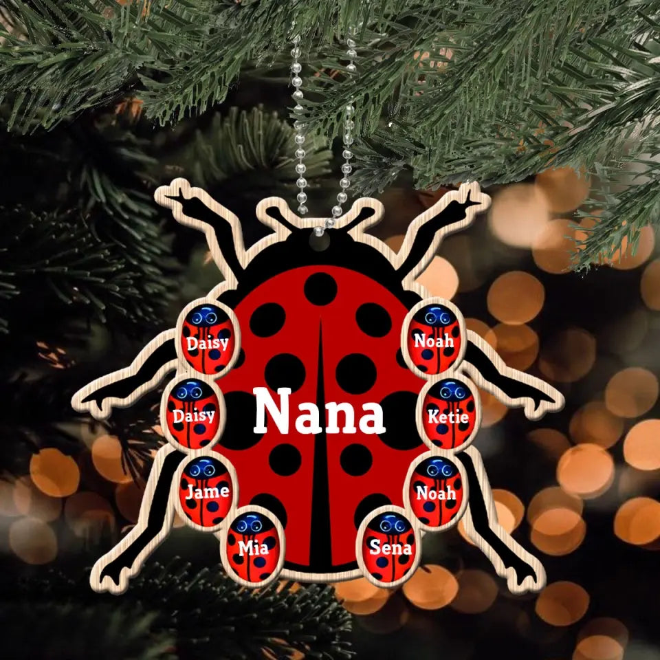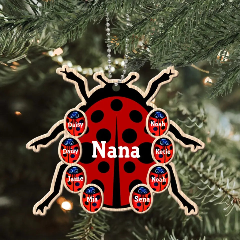 Personalized Grandma Bugs & Kid Custom Name Wooden Ornament Printed KVH231227
