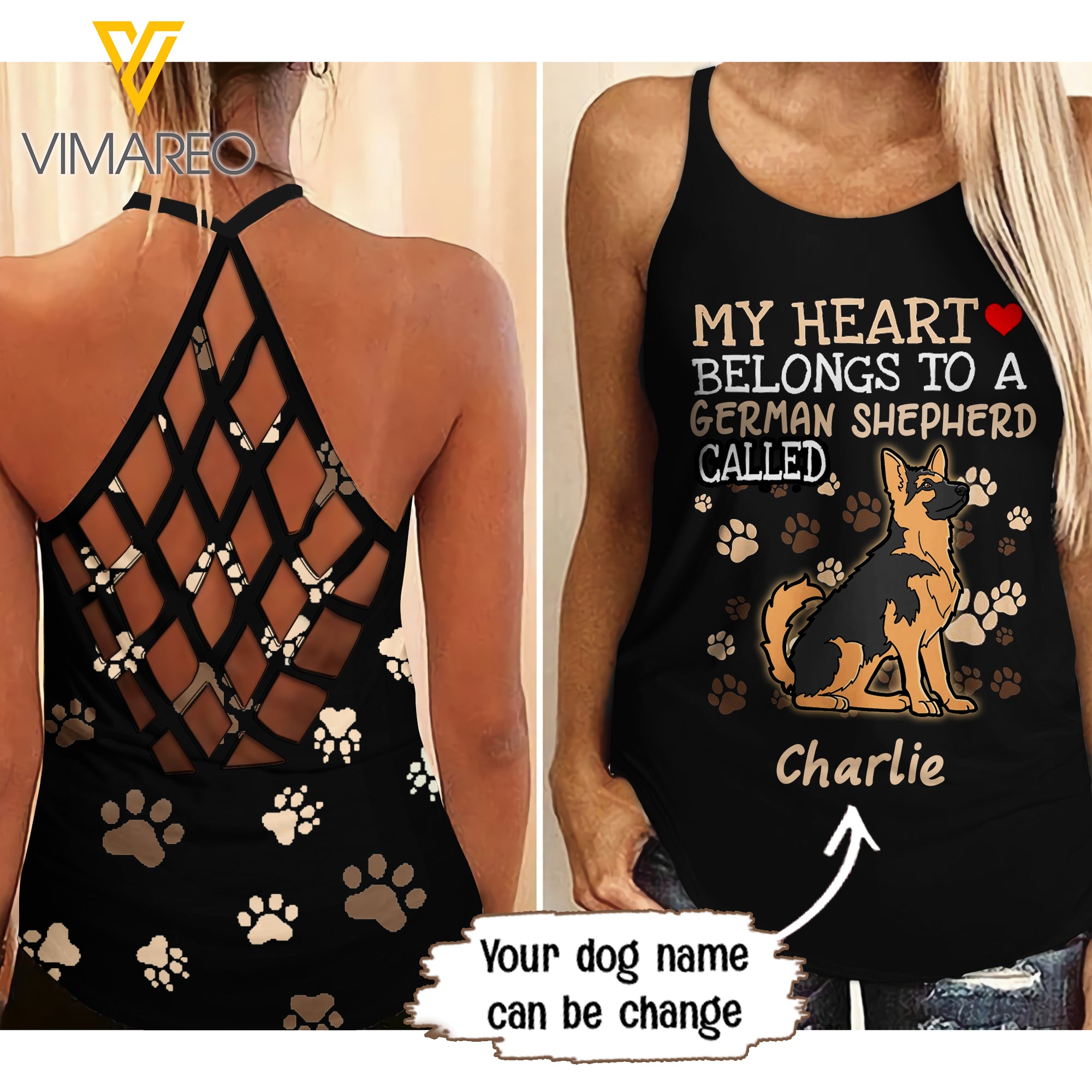 PERSONALIZED GERMAN SHEPHERD DOG CRISS-CROSS OPEN BACK CAMISOLE TANK TOP