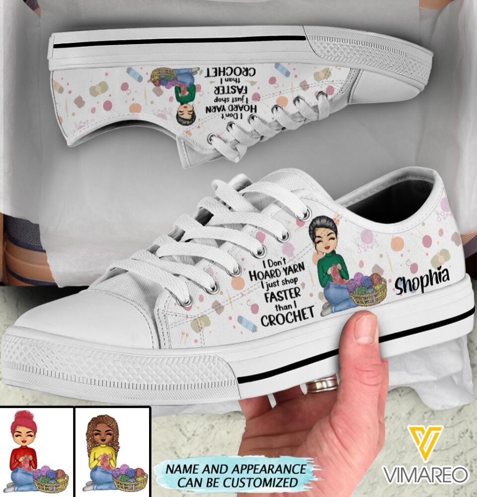 PERSONALIZED I DON'T HOARD YARN I JUST SHOP FASTER THAN I CROCHET LOWTOP SHOES PRINTED MTTN1403