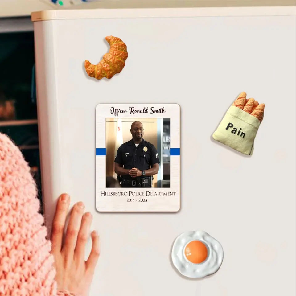 Personalized Upload Your Police Photo Gift For Dad For Him Wooden Picture Frame Magnet Printed QTHN24959