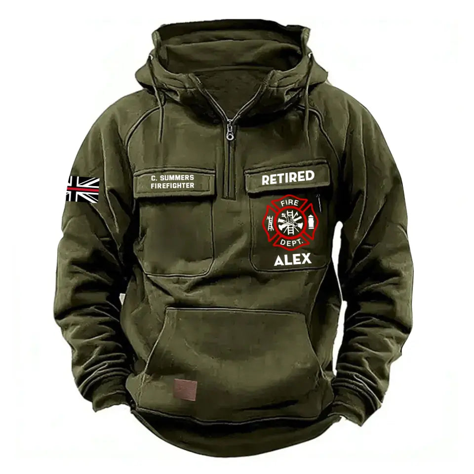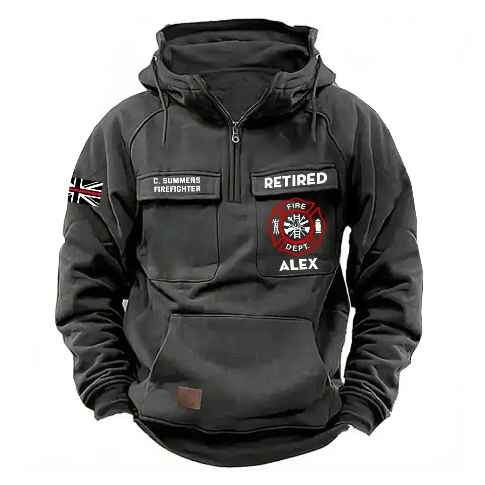Personalized Retired UK Firefighter Logo Custom Name American Retro Hooded Sweatshirt Printed QTHN241470