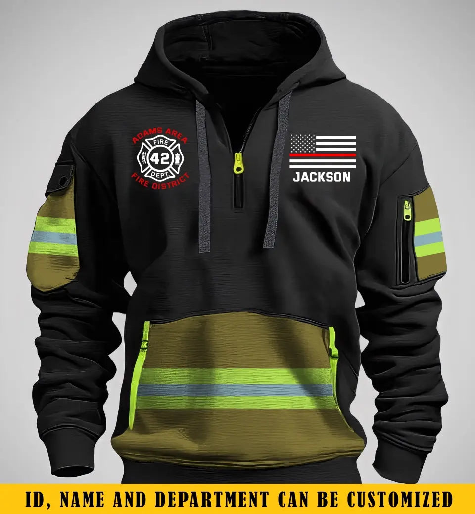 Personalized US Firefighter Custom Name & Department Quarter Zip Hoodie 2D Printed KVH24976